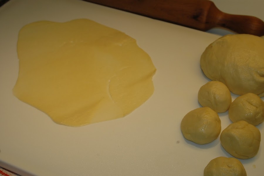 Se extiende en una superficie un poco enharinada, cogiendo bolitas; con la ayuda de un rodillo se va extendiendo lo más fina posible con forma de lengua.