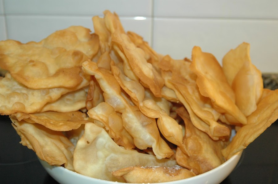Hay multitud de recetas. Yo he probado cada año, al menos, tres diferentes. De todas, ésta es la que más me ha convencido, pues salen crujientes, incluso después de varios días , además me he permitido enriquecer el sabor de la masa, pues es un tanto insípida porque no lleva azúcar. El dulzor se lo da después el azúcar glas y entonces es cuándo se convierte en algo requetebueno!!!!