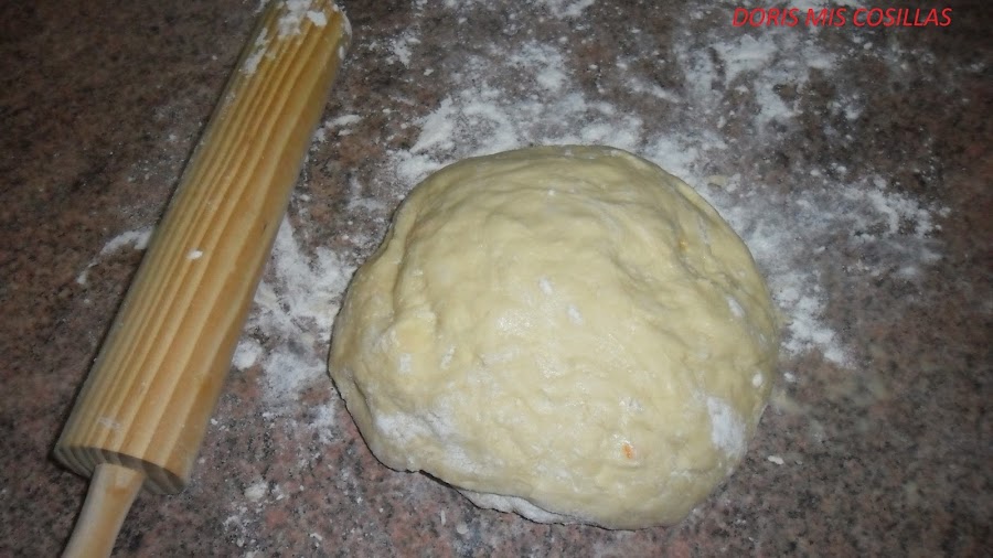 Una vez que tengamos preparada la masa, la ponemos en un bol espolvoreado con harina, dejamos sobre media hora de reposo o algo mas tapada con un paño.
