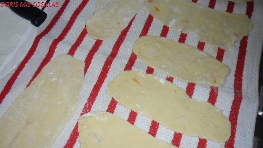 Ya solo nos queda poner un perol con abundante aceite de girasol que no esté excesivamente caliente y vamos friendo por tandas, podemos darle forma de oreja con un palito antes de darles la vuelta y se queden doraditas por los dos lados.