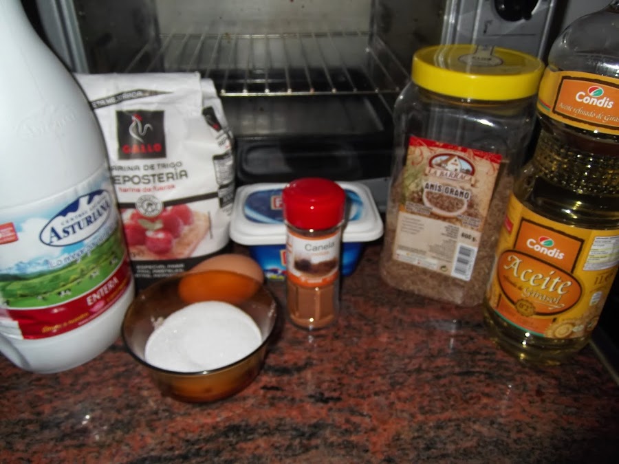 Lo primero que hacemos es la masa, en un cuenco ponemos la harina, hacemos un huevo en medio y añadimos la sal, el huevo, el anís, la leche y la mantequilla fundida. Amasamos todos los ingredientes y dejamos reposar durante 20 minutos.