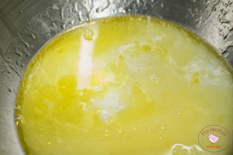 Ponemos en un bol el huevo,el aceite,el vino y el anís y mezclamos bien.