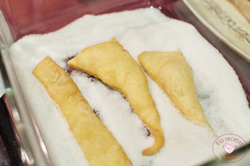 Cuando han escurrido el aceite,y aun estén calientes las rebozamos en azúcar con un poco de canela y listas para comer.