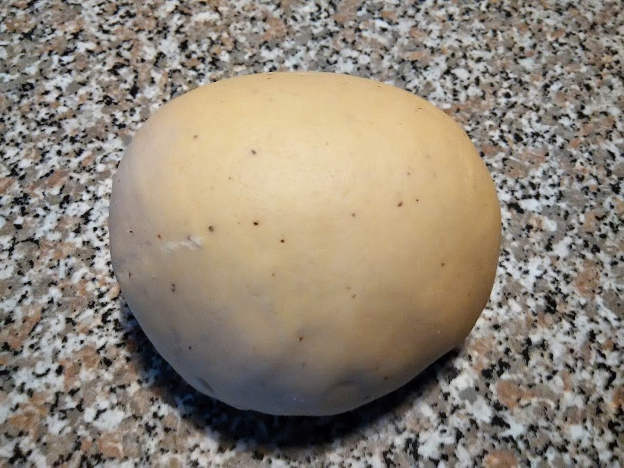 El anterior proceso a mi me llevó unos 20 minutos, al ver que la masa ya tenía el punto correcto hice una bolita, la envolví de film transparente y la dejé reposando 2 horas en el frigorífico (podríais usarla directamente pero a la masa el reposo le va bien para que adquiera consistencia).