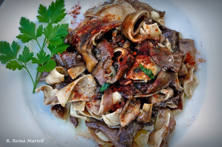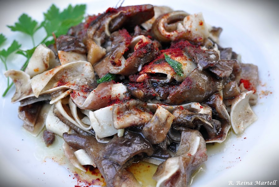 Aliñamos las Orejas cocidas a este majado y las pasamos por una sartén o plancha hasta que estas doren.