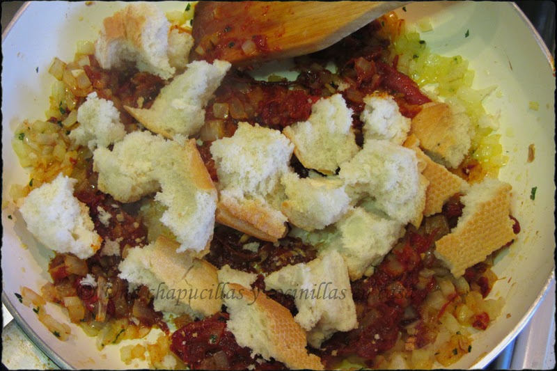 Añadir el pan duro en trozos y remover bien.