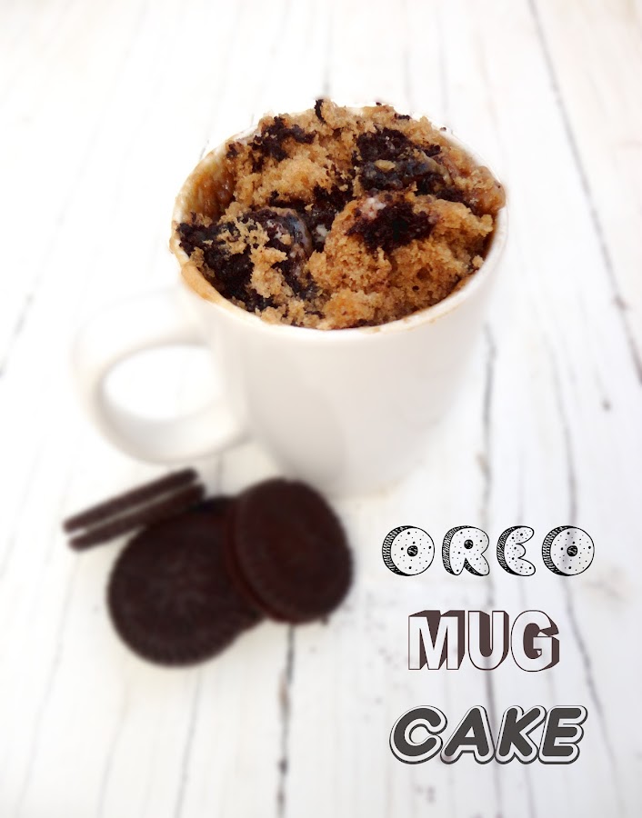 Ingredientes para hacer un oreo mug cake (2 tazas o 1 enorme!):