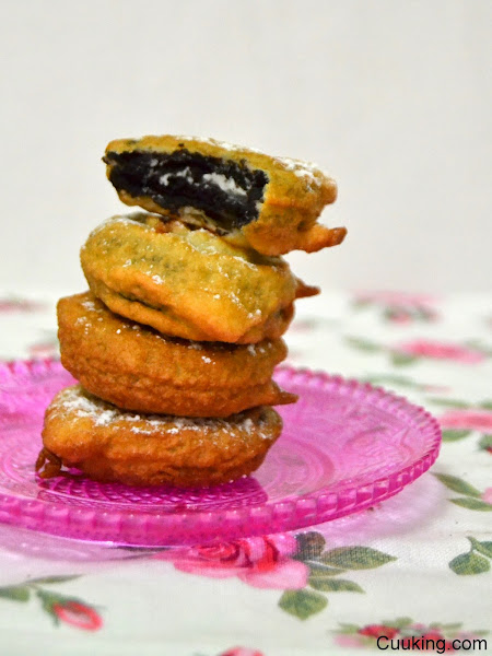 Hace tiempo que leí esta receta y aun no había tenido oportunidad de hacerla así que aprovechando que ayer hizo un día de tormenta y no nos apetecía salir de casa me anime con estos deliciosos buñuelos de Oreo.