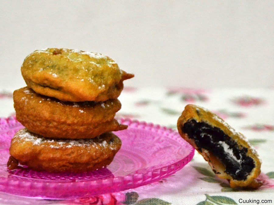 Como os podréis imaginar esta receta proviene directamente de Estados Unidos ,más concretamente de Texas, donde en las tradicionales ferias de pueblo se consumen creaciones culinarias de freidora como por ejemplo los pepinillos fritos, estas Oreo fritas, o incluso, ¡mantequilla frita!