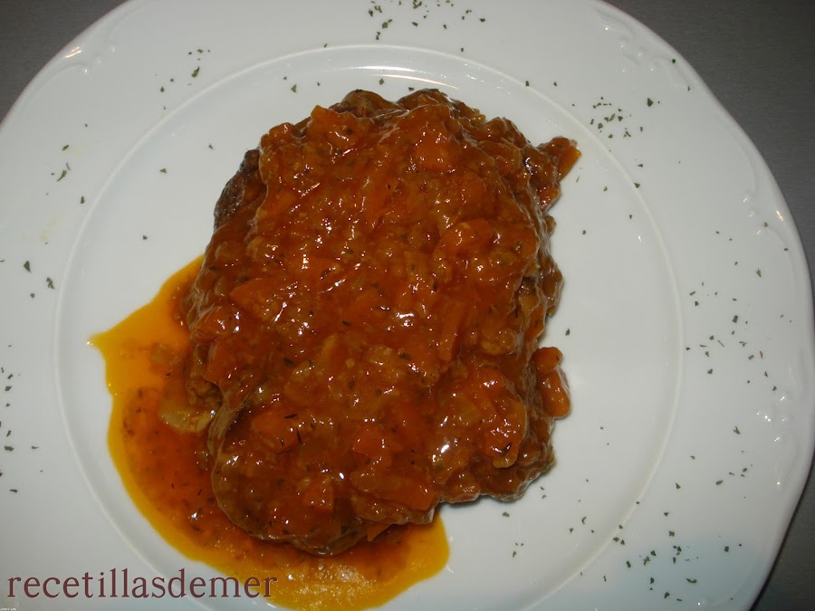 En primer lugar salpimentara la carne y pasarla por harina sacudiéndola un poco antes de freír en aceite caliente unos minutos por cada lado. Reservar.