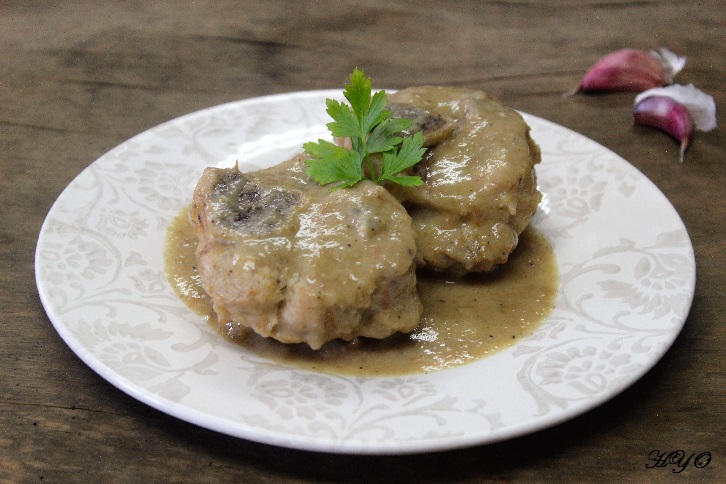 1. En primer lugar, con ayuda de un cuchillo, quitamos la piel exterior al ossobuco si es que todavía la tiene. A continuación salpimentamos las rodajas de carne por ambos lados.
