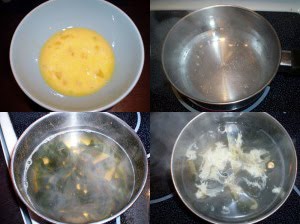 5. Agrega el huevo mientras aun hierva removiendo contínuamente.