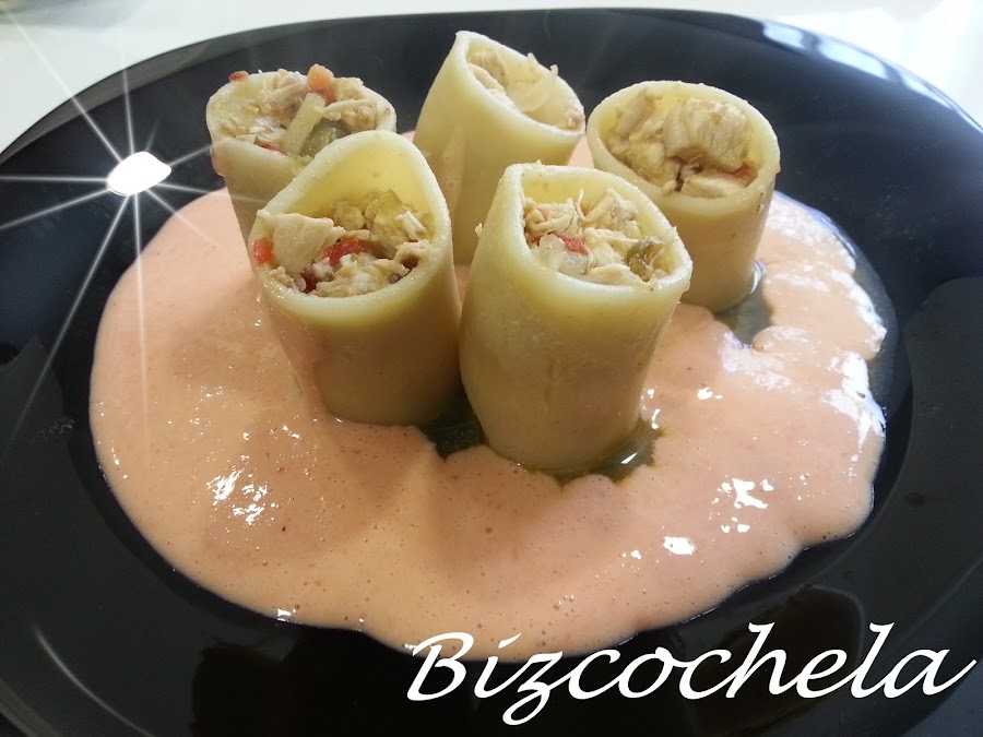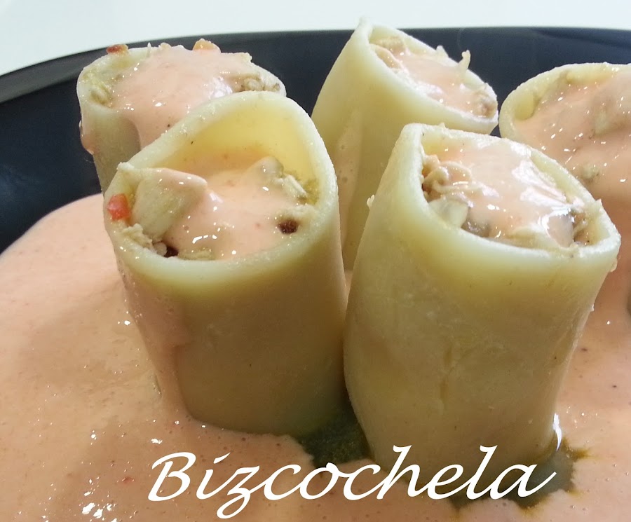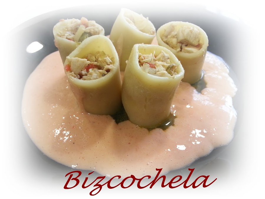 Bueno, hoy os voy a presentar un tipo de pasta. No la conocía, hasta que el otro día en el super vi el paquete de estos macarrones gigantes, o canelones cortos, depende como se miren.......llamados Paccheri. Así que los compré, a ver qué se me ocurría hacer con ellos.
