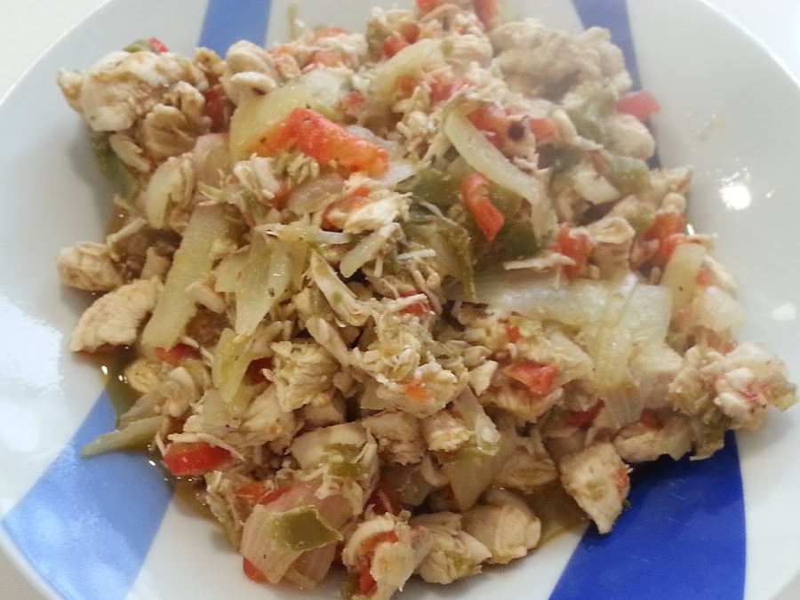 En realidad lo que hice fue mirar a ver que tenía, había que echar mano de la despensa y cosas que tenía en el congelador, así que cogí pechuga de pollo y pimientos, que cuando los compro, los troceo y los congelo, así los tengo listos para cualquier guiso. como podéis ver, están congelados.