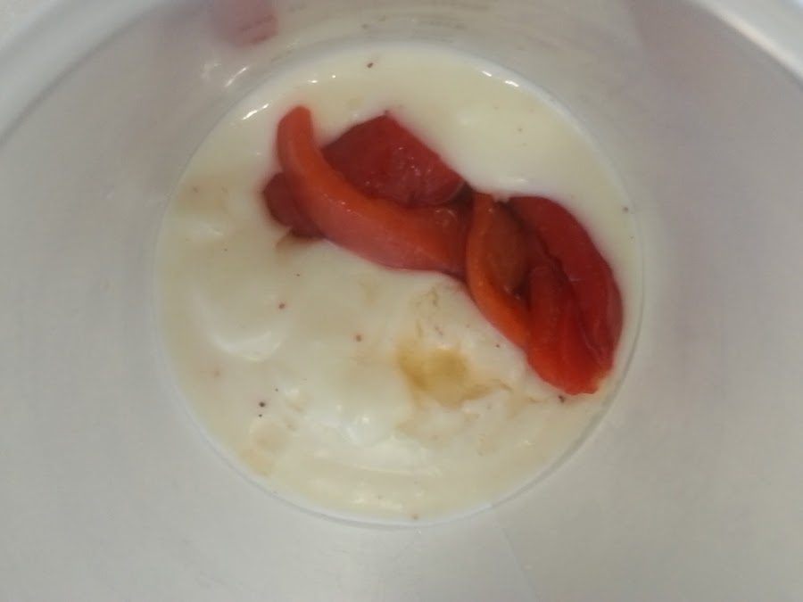 5. - Añadimos los dos pimientos a la bechamel y trituramos. Ya tenemos la salsa.