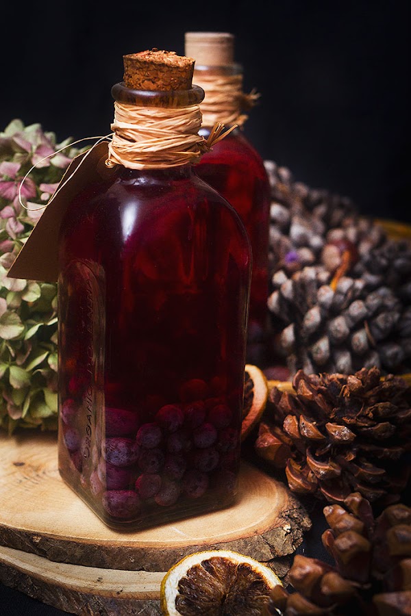 Movemos las botellas un par de veces a la semana para homogeneizar la maceración de las endrinas y el anisado.