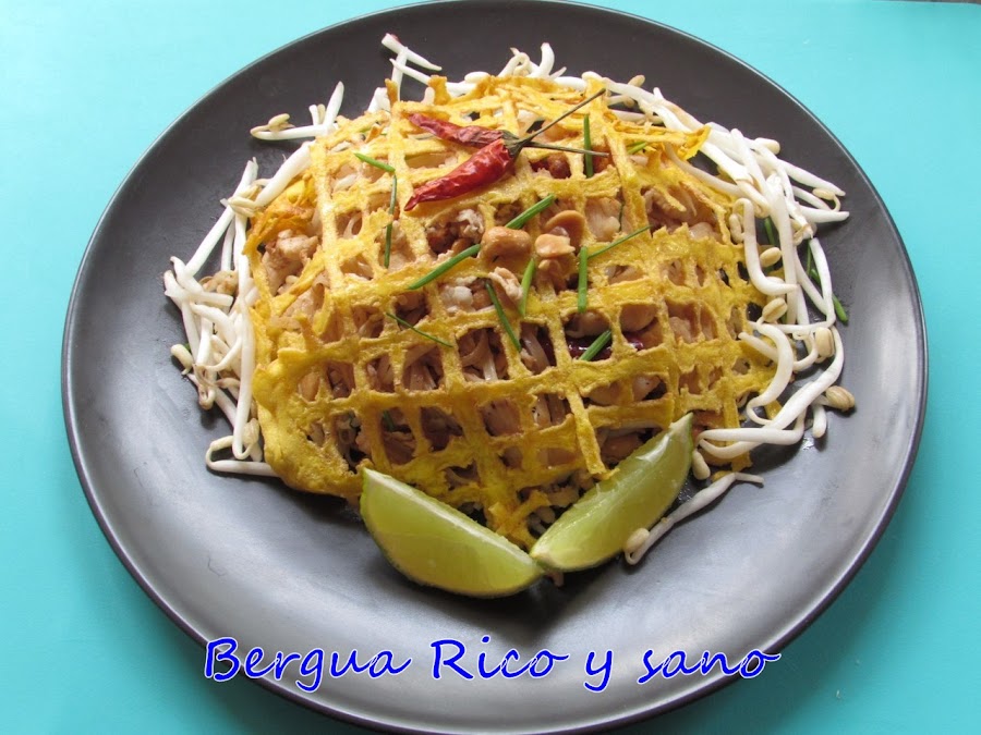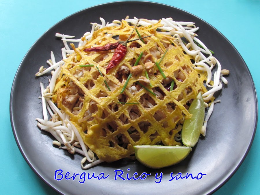 La receta la saqué de aquí, donde también aprendí un poco de historia: Resulta que el dictador Phibun (época de la II guerra mundial) quiso modernizar el país e introdujo muchos cambios, como el cambio de nombre de Siam a Tailandia. Como pasaban por una época difícil económicamente y el precio del arroz estaba por las nubes, también creó un plato sencillo con ingredientes baratos y accesibles (en Tailandia), y es que el hombre, además de militar, era cocinillas. Y así surgió el pad thai.