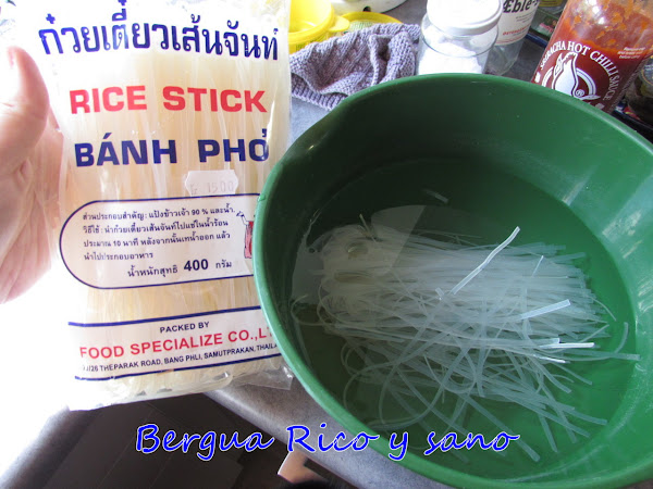 1. Ponemos los tallarines a remojo en agua a temperatura ambiente durante 30 minutos.