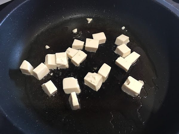 3. Calienta un wok a fuego fuerte. Vierte 1 c. sopera de aceite y mueve el wok para que se cubra bien. Incorpora el tofu hasta que se dore. Retira y reserva.