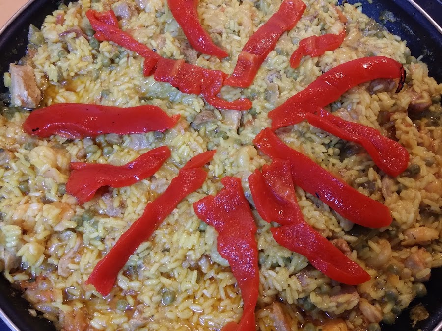 Ya sólo nos queda dejar que se haga. Dejamos reposar un poco antes de servirla y adornamos con los pimientos morrones.
