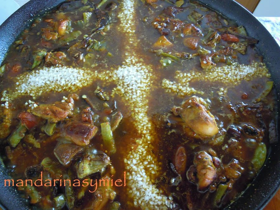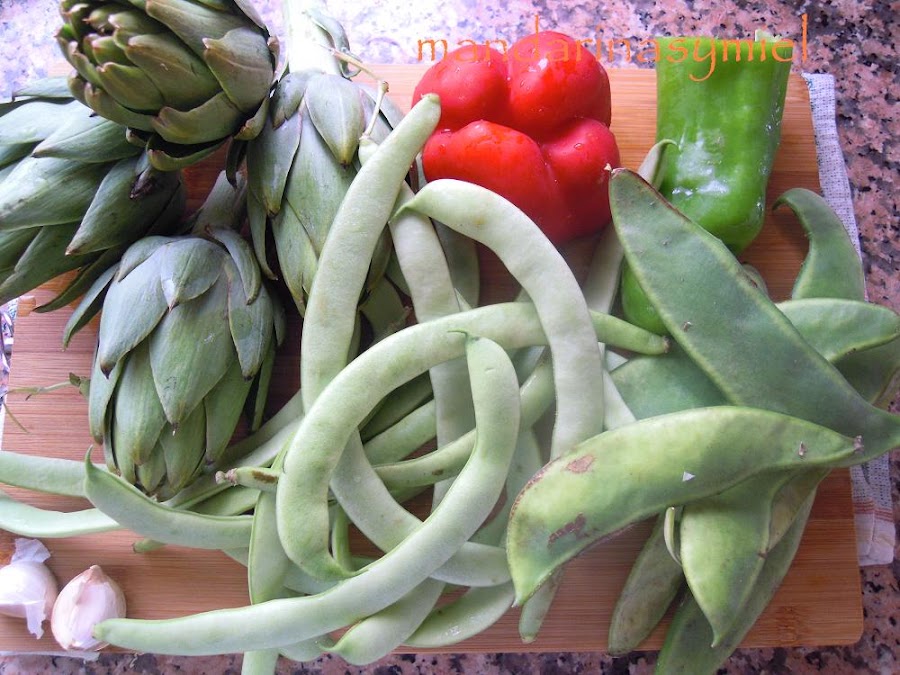 La paella puedes hacerla sin conejo, sin pato o sin costilla, pero nunca sin pollo. Hacía mucho tiempo que quería poner la receta de la paella porque es un plato que hago todos los domingos y alguna vez, entre semana también; pero preparo los ingredientes, pongo el paellero (es que tengo encimera y no se puede hacer), enciendo el fuego y cuando me doy cuenta ya nos la estamos comiendo y no he hecho fotos....bueno, pues otro día será....y así hasta que ví que Estela de La cocina de Estela, eligió como ingrediente para el reto Typical Spanish, el arroz. Entonces me dije que era el momento de ponerla, no hay plato más típico de arroz que la paella (por lo menos para mí), aunque hay muchos platos de arroz tradicionales con una gran variedad de ingredientes.