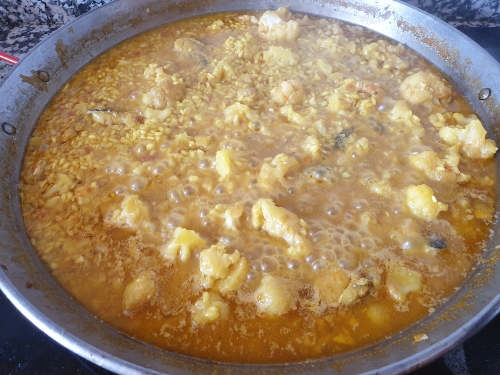 El arroz de coliflor y bacalao es una receta saludable y deliciosa, típica de la costa alicantina. Es una paella sencilla y rica, con un suave sabor. Esta es la version de la paella que hacía mi madre.