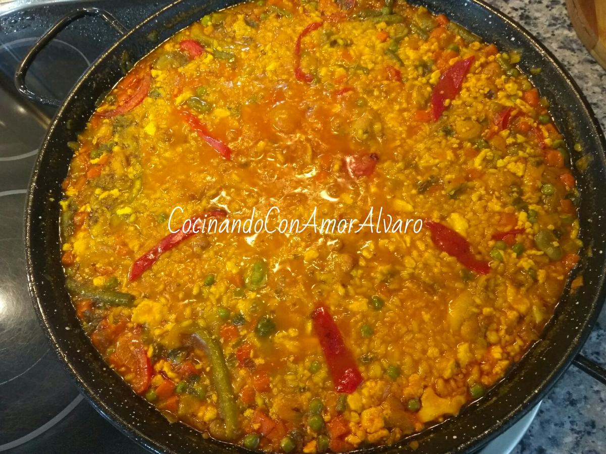 Hoy vamos a elaborar una Paella con Verduras, que irá acompañada de pollo. Queda muy rica y es la más conocida, como las recetas de nuestras abuelas que lo llamaban arroz con pollo.