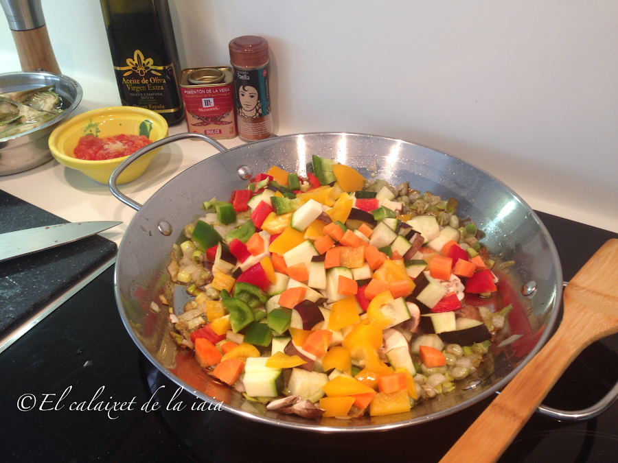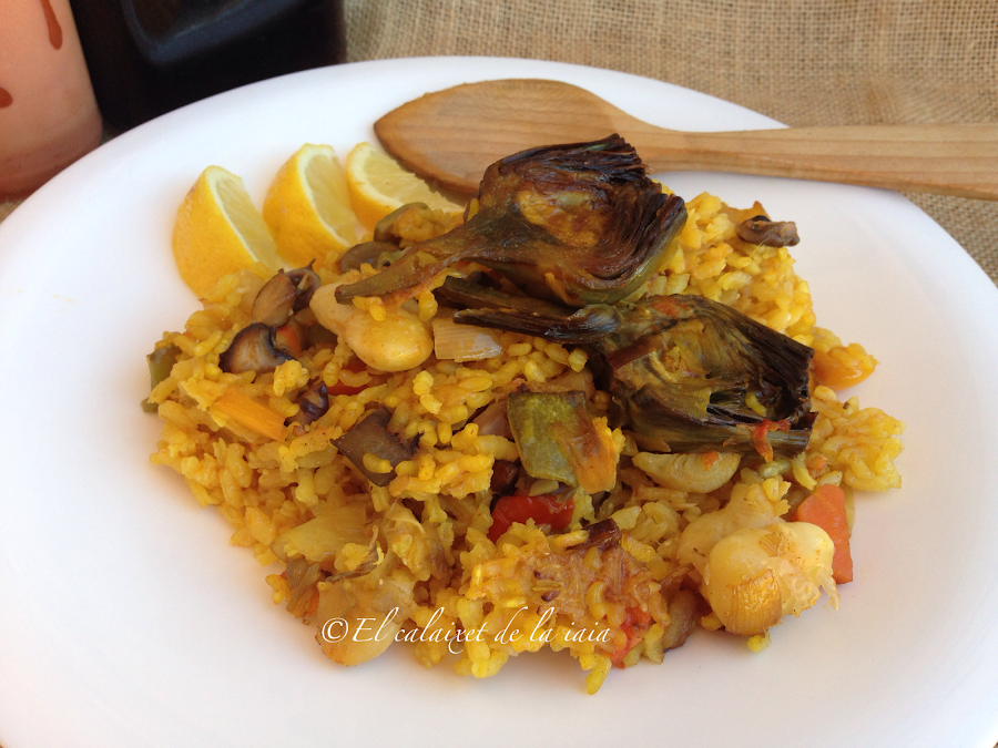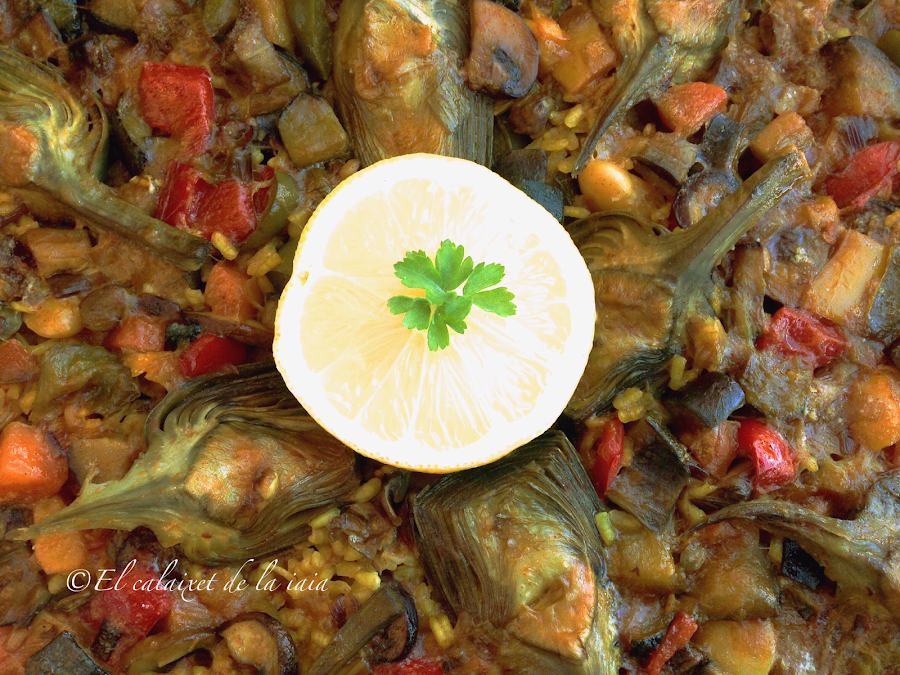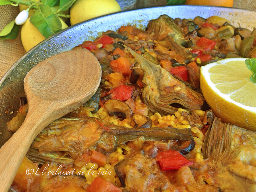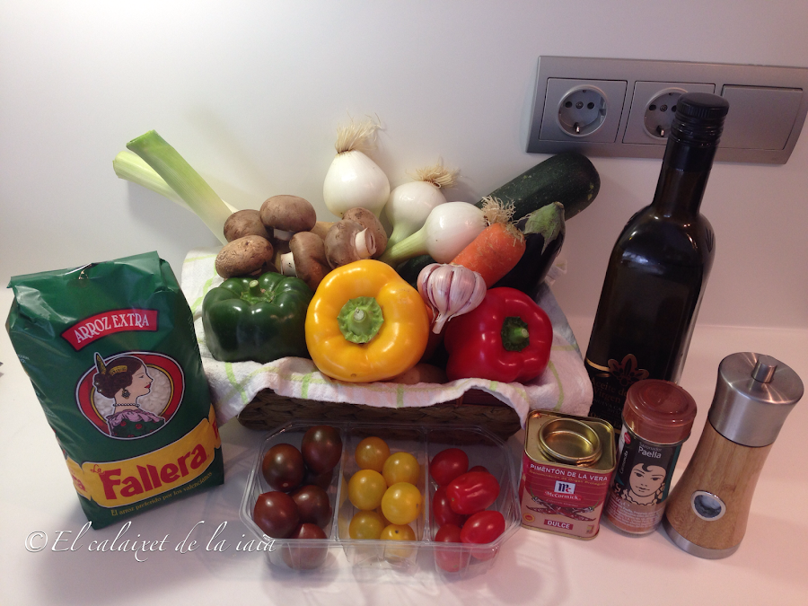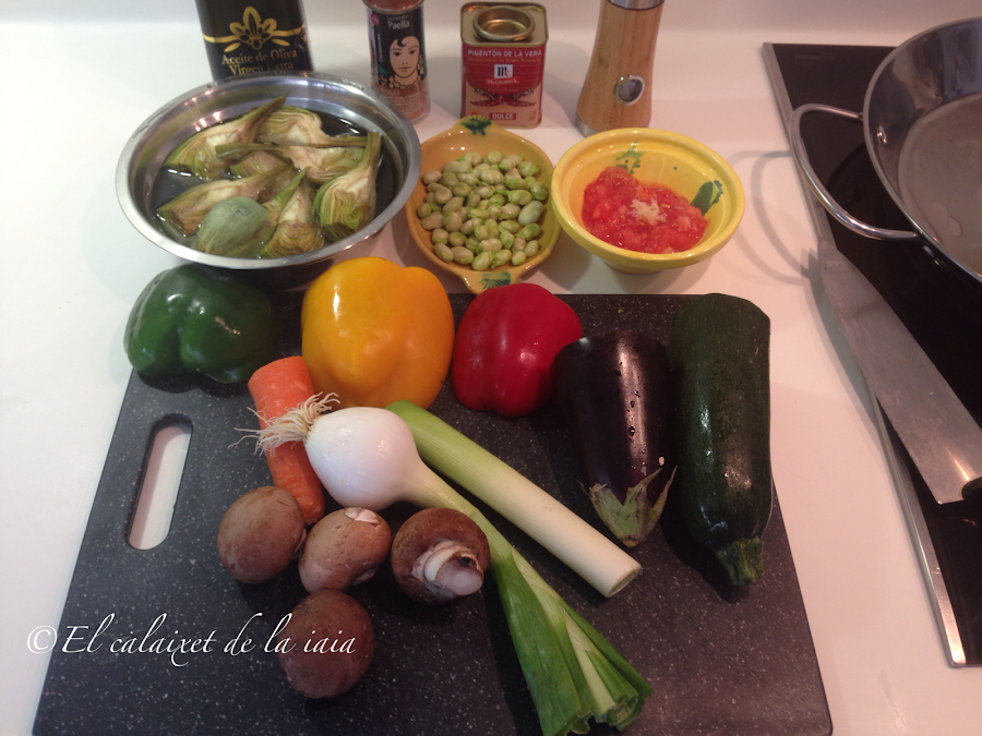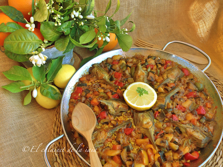 Traigo la receta de paella de verduras una de las favoritas de mi marido. Una paella muy de la huerta ya que se utilizan únicamente verduras....toda clase de verduras que tengamos de temporada y a mano. Aunque parezca que no lleva arroz ;) si lo lleva, pero queda casi cubierto por el fruto huertano.