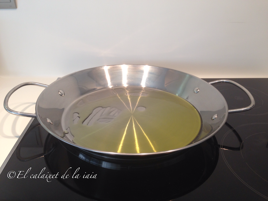 Como todas las paellas, no hay mejor lugar para hacerlas que en un buen y seguro paellero en el campo y utilizando la leña como fuego, el sabor ahumado de la leña da al arroz un toque especial, perooo, me tengo que conformar con la vitro. Por fin encontré el recipiente ideal para prepararla en vitrocerámica y no es ni mas ni menos que la paella de acero inoxidable con fondo difusor.