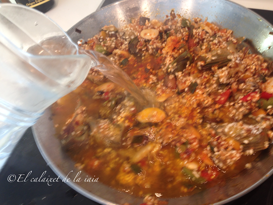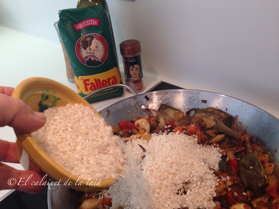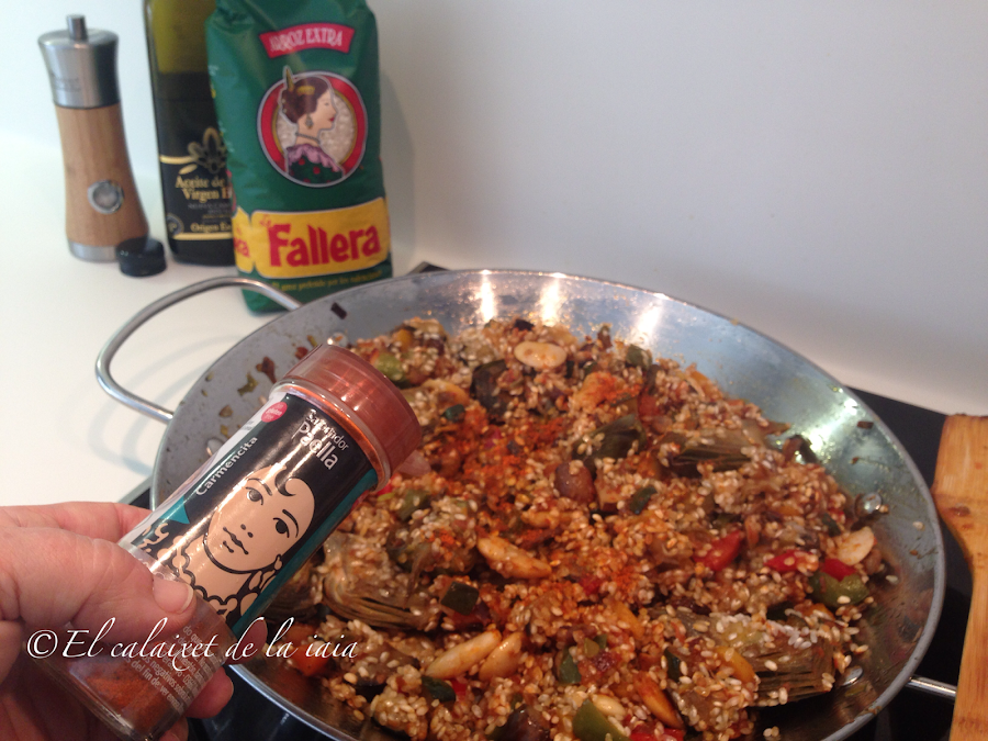 seguidamente, espolvoreamos preparado para paella con azafrán