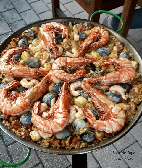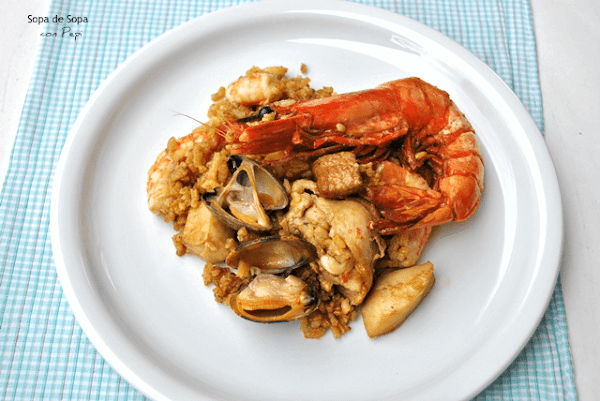 La primera parada es el arroz. No te vayas de Valencia sin probarlo. El recetario es extenso, arroz al horno, de marisco, de pato, de bogavante, arroz negro, con setas y lo más típico... su paella. Y ésta es la que yo presento para el reto. Paella a mi manera, ya que cada uno la hace con sus propios toques.
