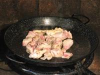 Una vez el aceite esté caliente comienzas a freir la carne a fuego lento. La carne de pollo y de conejo se tiene que freir hasta que coja un color dorado bonito. Cuando la carne coja éste color dorado sabemos que está en su punto para preparar una buena paella valenciana. A pesar de que la carne de conejo tiene un sabor parecido a la carne de pollo, muchas personas prefieren la paella sin carne de conejo. La paella valenciana original sí que lleva carne de pollo. Puedes añadirla o no.