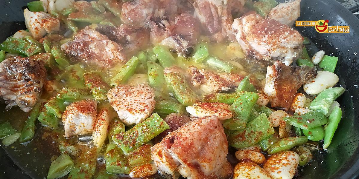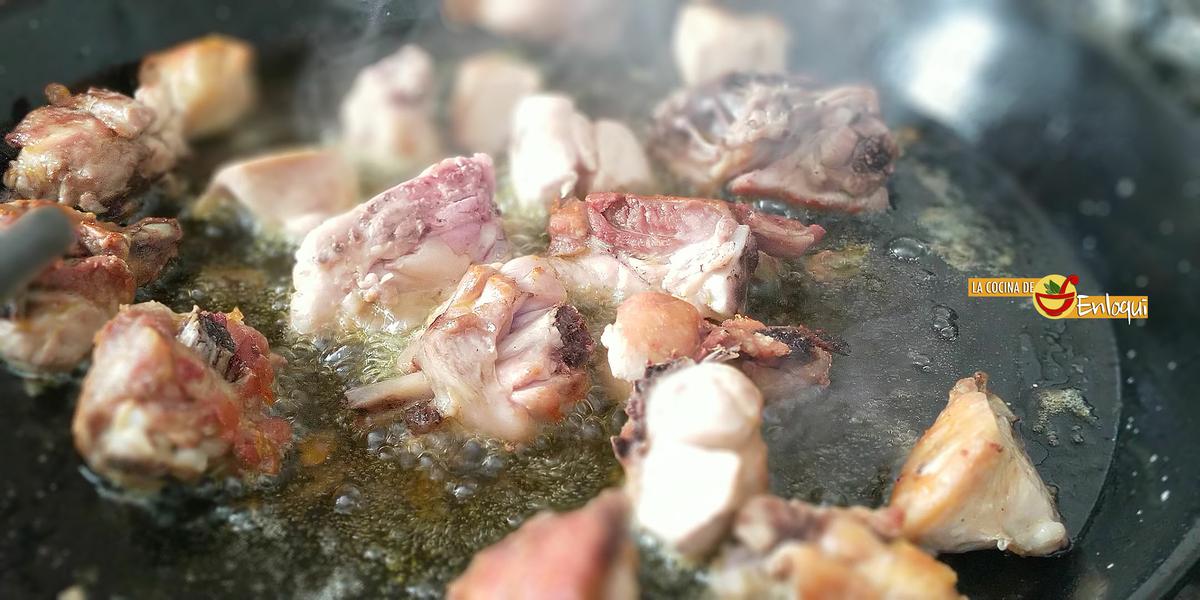 Para preparar este tesoro de nuestra gastronomía comienza poniendo un fondo de aceite de oliva virgen extra en la paella. Lleva al fuego y dora la carne, tanto el pollo como el conejo. Ayúdate de unas pinzas para ir girando y que quede dorada por todas partes.Trucos extra