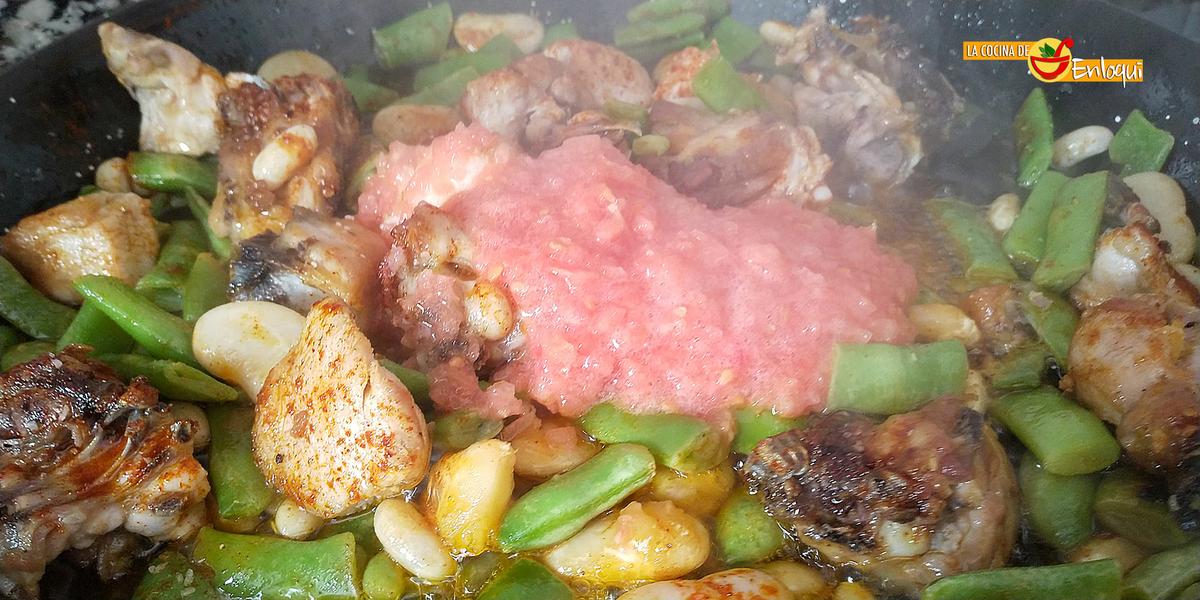 Los ingredientes que no pueden faltar en la auténtica Paella Valenciana son: el arroz, pollo, conejo, judías verdes planas, judía garrofón o judía de Lima, tomate, aceite de oliva, agua, azafrán y sal.Como siempre, os recomiendo usar materia prima de calidad porque os garantizará el éxito.