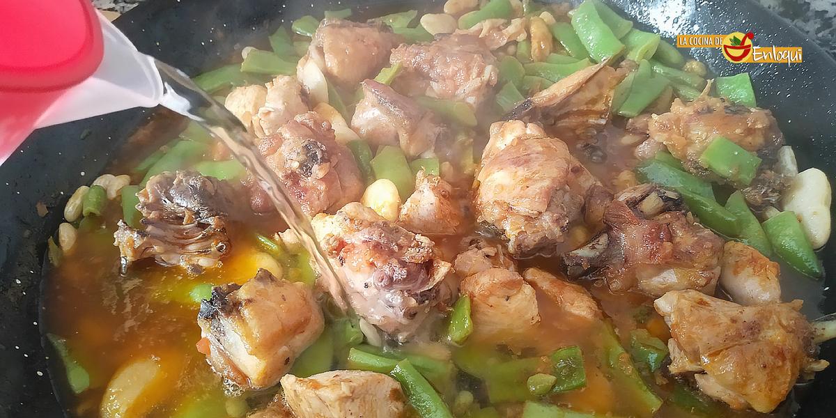Muchos de vosotros me preguntáis si es mejor hacer la paella con agua o con caldo. Pues bien, la tradición indica que debe ser agua. En mi opinión también lo prefiero. Además, si por las cantidades o por el tipo de arroz que usas necesitas más agua, recuerda añadirla siempre hirviendo para no detener la cocción del arroz.no remover el arroz
