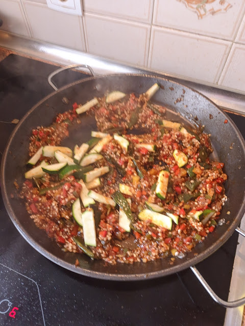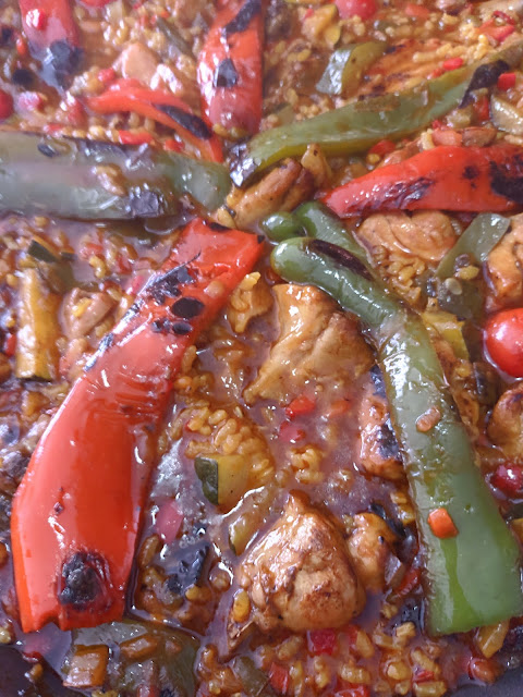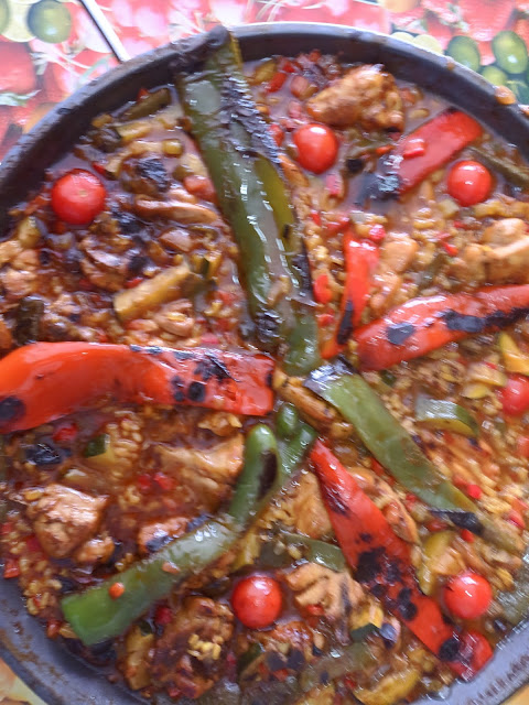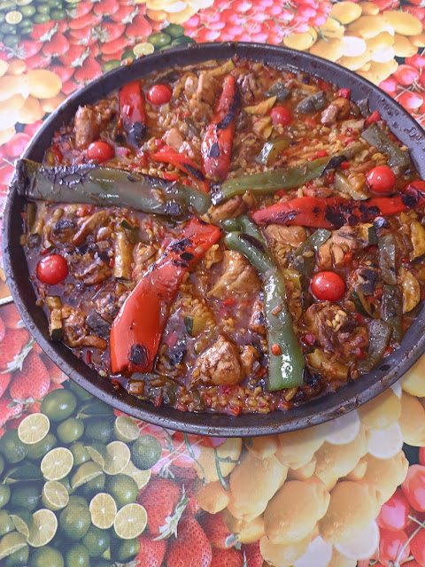 Si el arroz está tierno, sacar la paella y dejar reposar tapada con el papel aluminio.