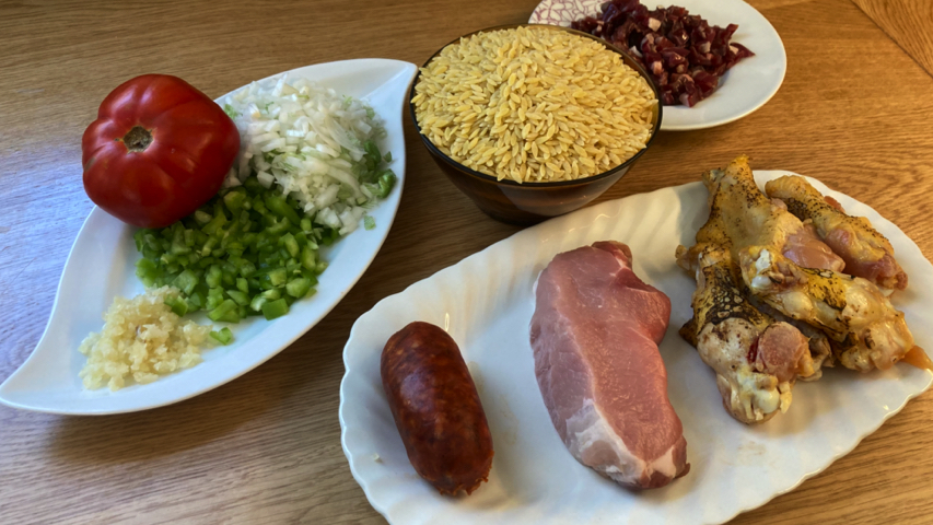 Sofríe la carne salpimentada en una paella con aceite de oliva y a fuego alto.
