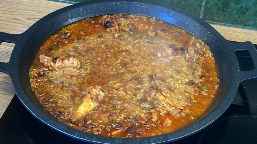 Cuando hierva el líquido baja el fuego a medio-alto y deja cocer unos 10 minutos.