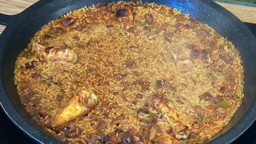 Cuando el tomate se haya sofrito incorpora el orzo y salteadlo un par de minutos.