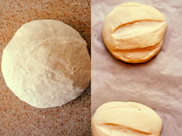 Volvemos a amasar un poco y dividimos en dos o tres porciones, según los panes que queramos hacer. Le damos forma de bola y dejamos reposar encima de la bandeja de hornear tapados con un paño otra hora.