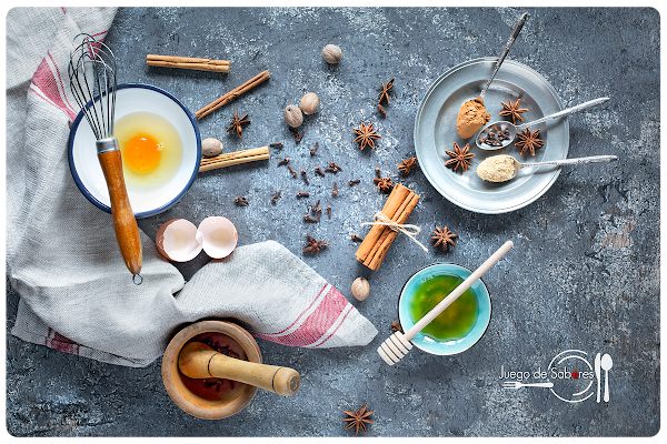 8 g de especies: canela, jengibre, nuez moscada, anís estrellado y clavo (la cantidad de cada producto puede variarse pero siempre conviene triturar bien aquellas especias que no venden en polvo).