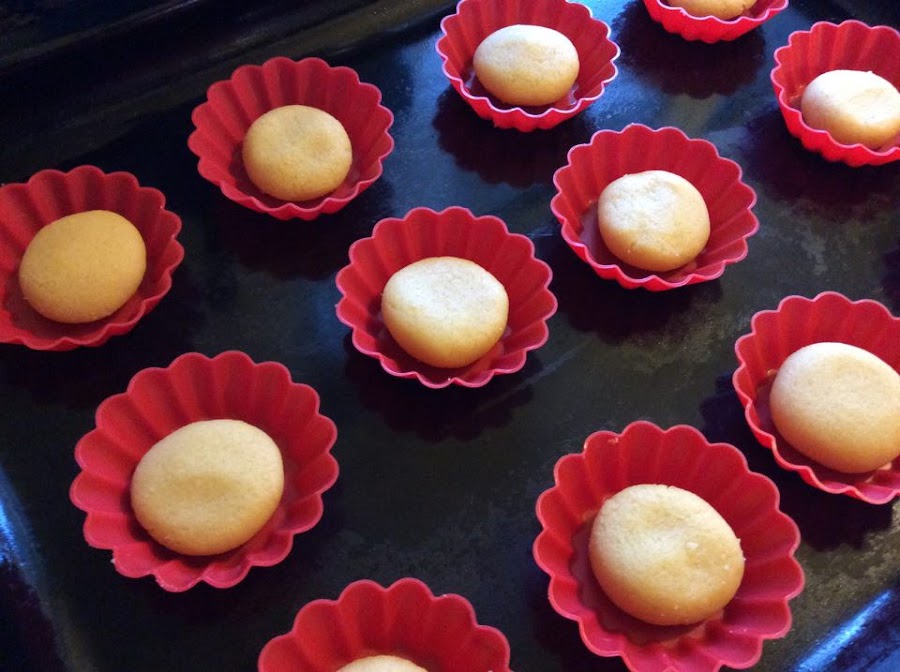 Una vez lista, formar bolas de unos 10 gramos cada una y colocar en un molde de magdalenas pequeñas o similar (en molde de magdalena normal, poner 20 g de masa).