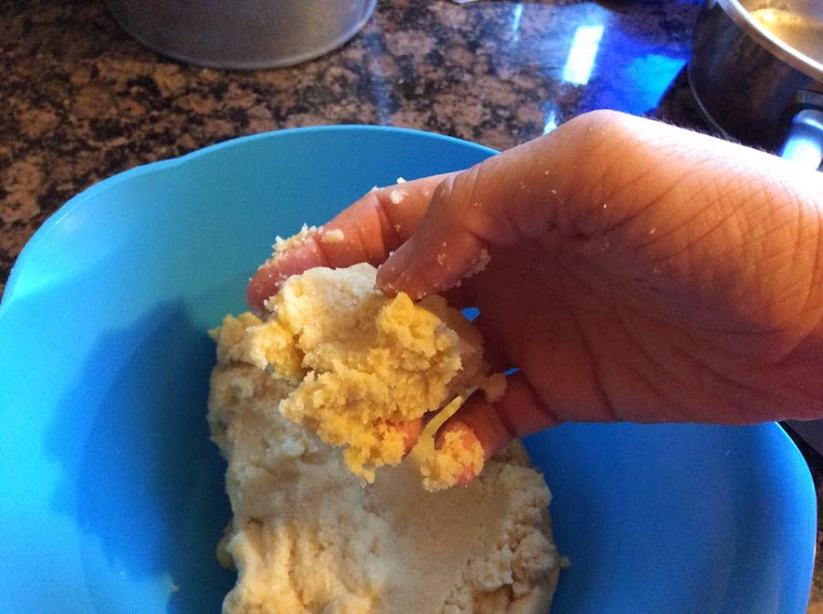 Amasar con los dedos hasta que quede bien mezclado.