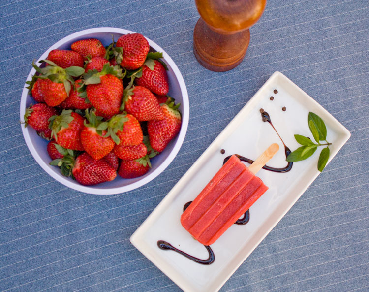 Si quieres darles un toque más gourmet a estas paletas, puedes cubrirlas con choco, o servirlas con unos hilitos de Aceto Balsámico como muestra en las imágenes.