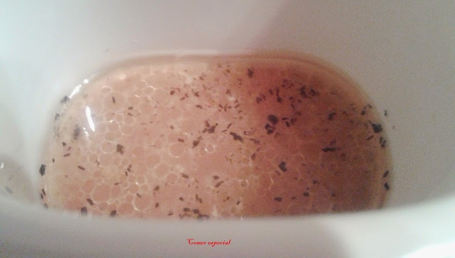 ¡Mira qué color! ¡Y el sabor es espectacular, con un toque ahumado buenísimo! Digo toque porque no es algo fuerte, sino suave. Además, recuperamos los jugos que soltó el asado, como puedes ver en la foto. Y rociamos un poco la carne con él. La verdad, creo que debo seguir investigando a ver si se me ocurre qué hacer con este maravilloso líquido para aprovecharlo más; preparar una salsa especial, por ejemplo. Debo pensarlo o tal vez tú me puedas aportar una idea.