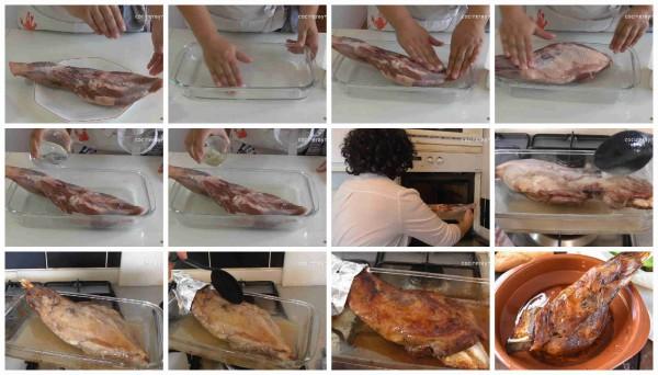 Bajamos la temperatura a 160ºC y dejamos 1 hora, para una pieza de 1 kg aproximadamente; y cada 20 minutos vamos mojando con los jugos de la bandeja, es decir que lo mojaremos 3 veces.