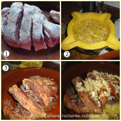 3.- Cuando la paletila está tostadita, añadir la salsa del mortero y continuar horneando, regando de vez en cuando la carne.