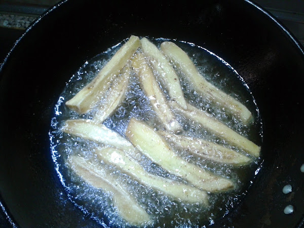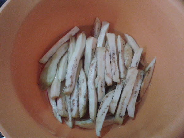 Preparación:Pelamos las berenjenas, cortamos a palitos y salamos, la colocamos en un bol y cubrimos con la gaseosa o cerveza, ( yo he usado gaseosa ) dejándolo unos diez minutos.