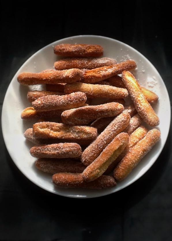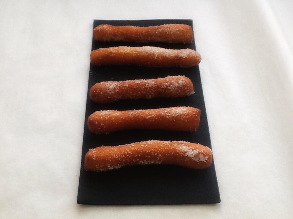 Hoy nuestro desayuno viene acompañado de estos palitos, tipo roscos fritos de textura crujiente, hechos de leche condensada y un toque de limón.