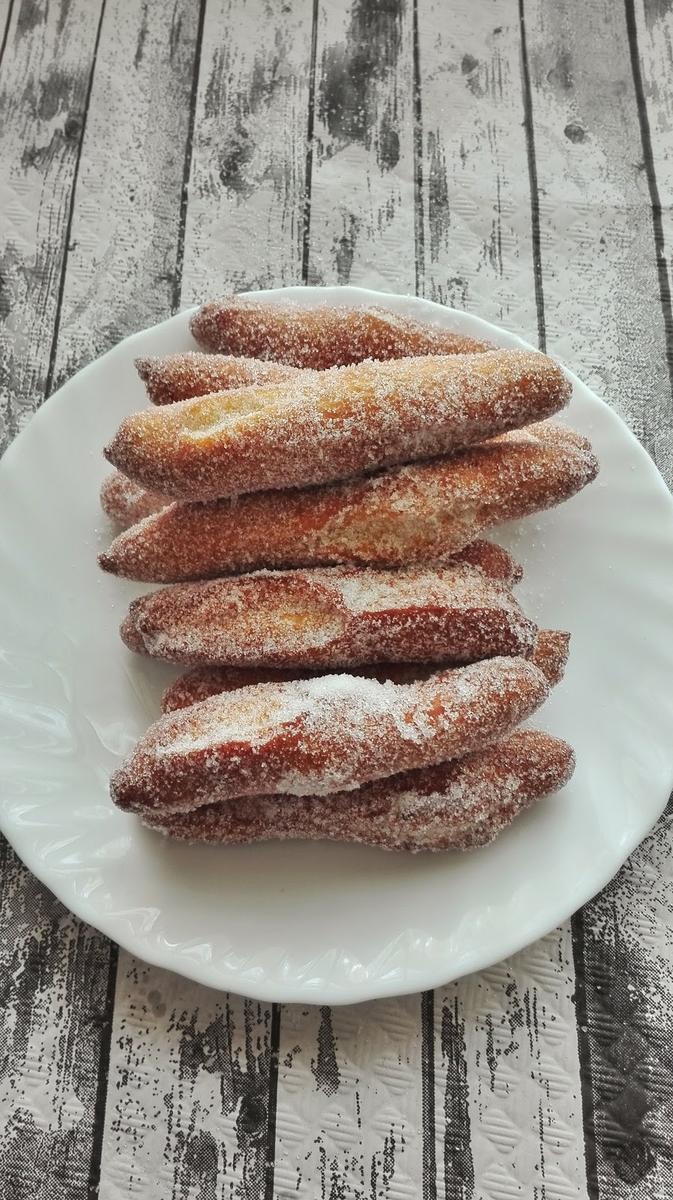 Cogemos porciones de masa, redondeamos entre las manos y finalmente les damos forma alargada.